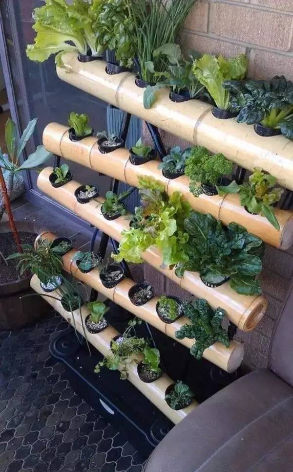 4 利用多層花架省空間 小戶型種菜必學 用一個竹筒子每一節(jié)種不同的蔬菜 一次性可以吃到很多種類的蔬菜啊,哈哈