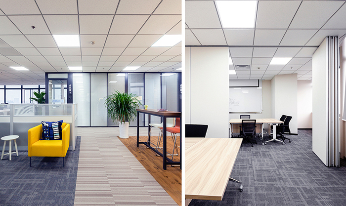 在辦公室進(jìn)行頂面裝修時,因大多辦公室都是租在一些大廈的內(nèi)部,出租方一般會對其裝修有一定的要求。在辦公室裝修設(shè)計時,其隔斷劃分時一定要考慮到頂部的煙感、中央空調(diào)進(jìn)出風(fēng)口,以及固定光源、噴淋等基礎(chǔ)的配套設(shè)施。