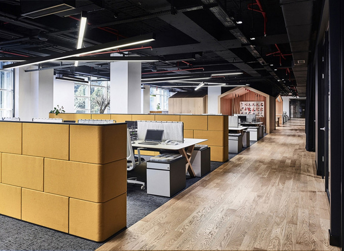 傳統(tǒng)行業(yè)的長沙辦公室裝修在設(shè)計開放式辦公室時會關(guān)注到辦公人員和部門團(tuán)隊之間的聯(lián)系,單位面積容納的辦公人員會更多,大大提高了辦公空間的利用效率。