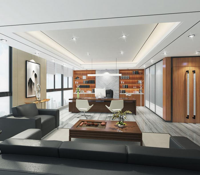 董事長辦公室設(shè)計:董事長是企業(yè)的核心,此處也是企業(yè)的核心所在,辦公、接待、洽談、交流、展示組成一個完成的董事長辦公室。