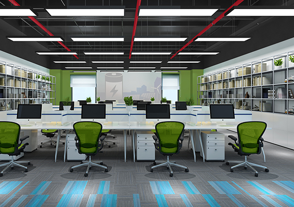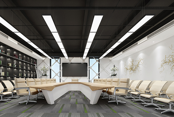在采光方面,也加強了自然光的利用,人工照明也力求舒適柔和不刺眼目。在辦公空間設計的配色上,以黑白藍為主色,以簡潔、完美的造型給人們帶來精神上的享受,辦公室設計出來的整體效果要給人一種明亮、青春、充滿活力特性。
