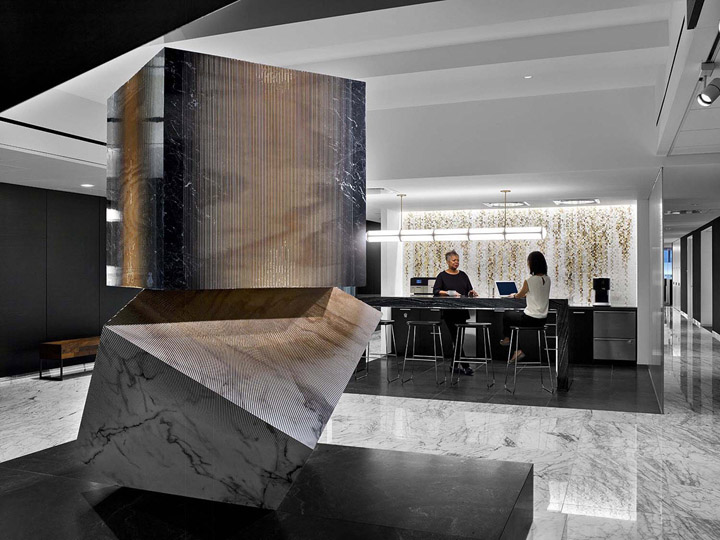 客戶將之前辦公室收藏的藝術品也展示于新的工作場所中。他們還拍賣了一些珍貴的藝術品,從紐約當?shù)厮囆g家那里購買當代繪畫和雕塑,極簡而凝練的現(xiàn)代空間在這些藝術品的映襯下更具時尚文化魅力。