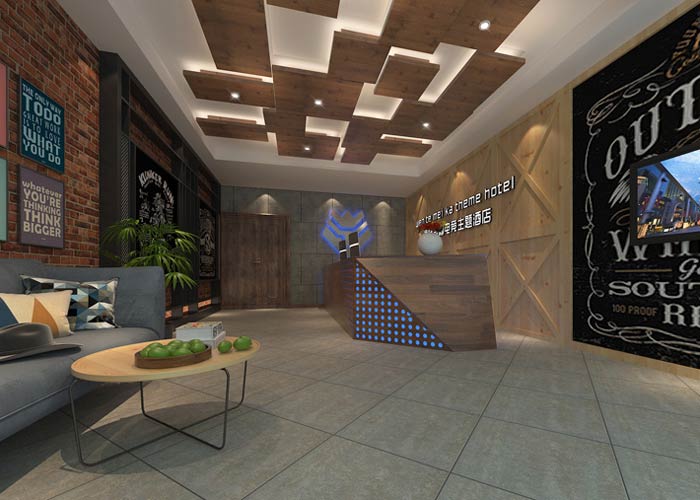 電競(jìng)酒店前臺(tái)設(shè)計(jì):前臺(tái)的設(shè)計(jì)類似于咖啡廳設(shè)計(jì),之所以這樣設(shè)計(jì),是設(shè)計(jì)師希望本次酒店設(shè)計(jì)區(qū)別于以往的設(shè)計(jì),這樣做是為了與酒店的屬性相吻合,打造屬于自己的風(fēng)格。