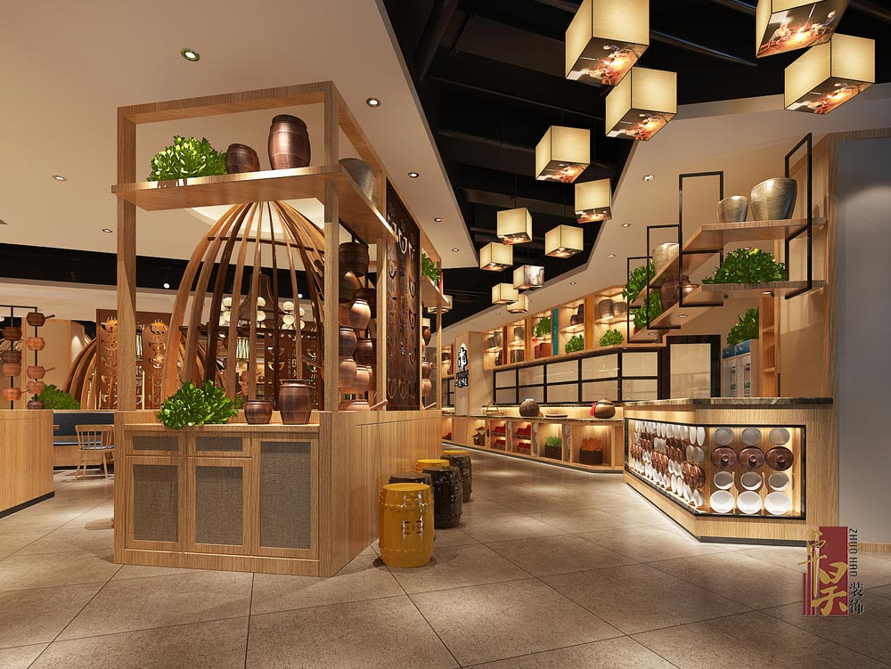 長沙餐飲門店裝修設(shè)計(jì)需具有充分的構(gòu)想及合理性,其中店堂裝潢設(shè)計(jì)的優(yōu)劣,廳堂的高度是否合理,燈光照明是否合理,店堂面積的大小,都直接影響飯店成功經(jīng)營的因素。因此作為飯店的前廳都應(yīng)寬敞、明亮。其高度應(yīng)不低于3米。